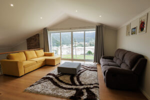 The Upper Lounge: Our favorite spot in the house! A second living area featuring a comfortable sleeping couch and unobstructed, panoramic views of the Furnas valley.